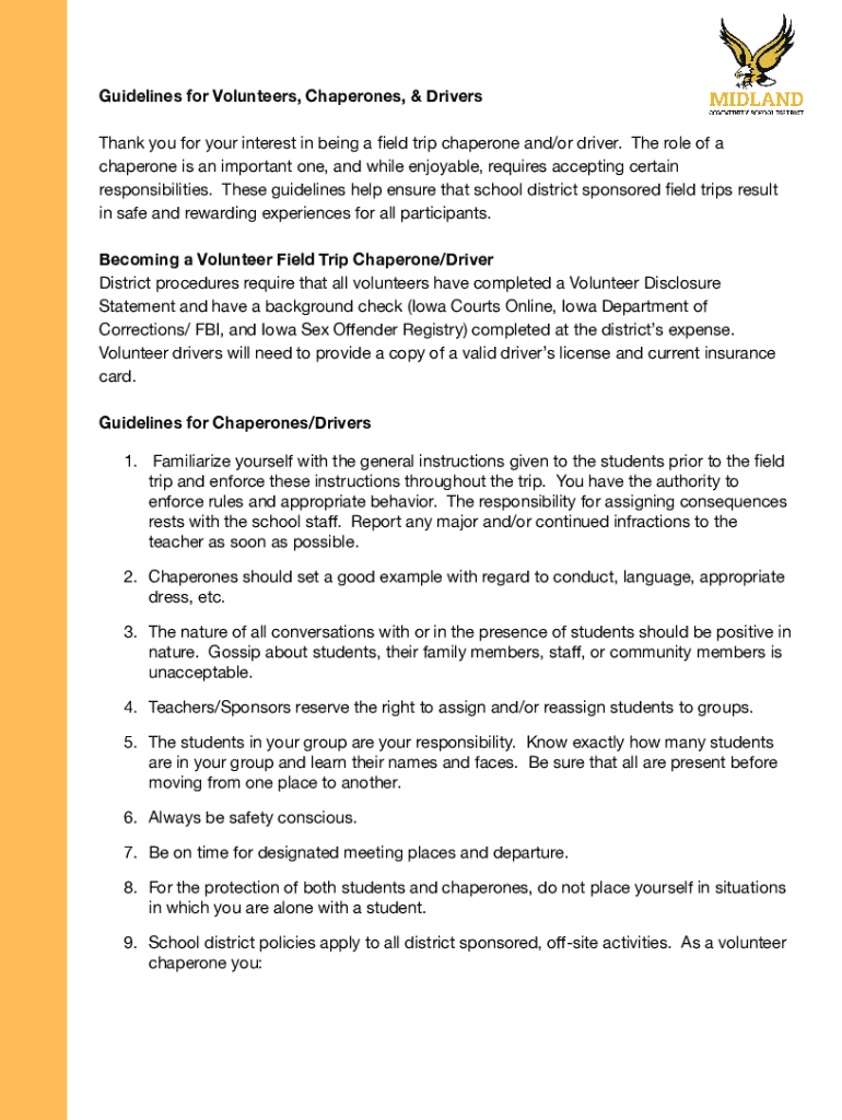 Get the free Guidelines for Volunteers, Chaperones, & Drivers