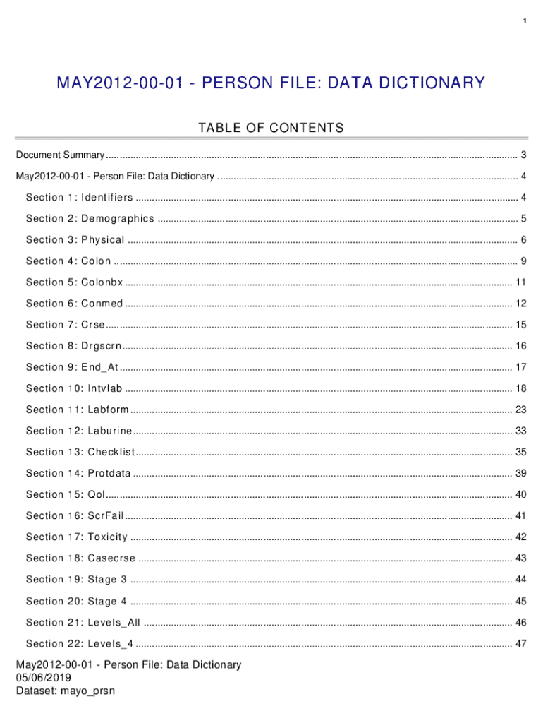 Get the free May2012-00-01 - Person File Data Dictionary. May2012-00-01 - Person File Data Dictio...