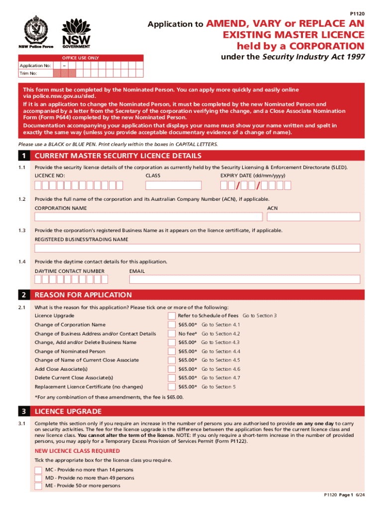 Este formulario debe ser completado por la Persona Nominada. Se puede solicitar más rápida y fácilmente en línea a través de police.nsw.gov.au/sled. Incluye instrucciones sobre cómo realizar cambios en los detalles del Licencia de Seguridad.