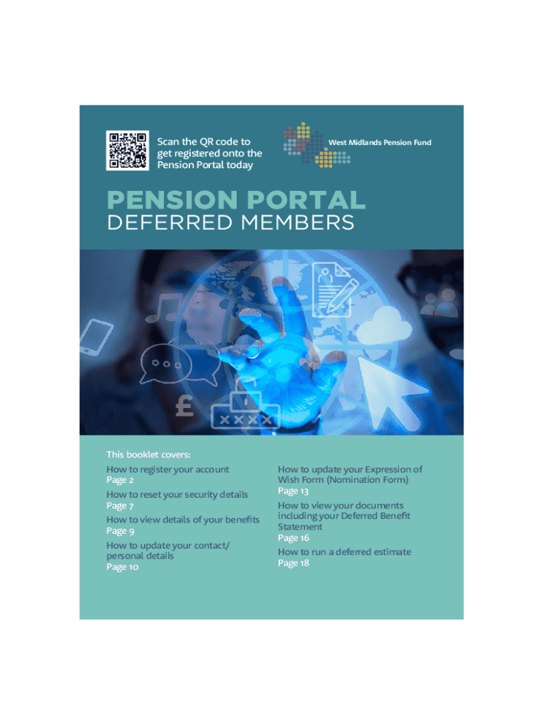 Deferred Member Pensions Portal.qxp_Layout 1 24/07/2024 09:18 Page 1Scan the QR code to get registered onto the Pension Portal todayWest Midlands Pension FundPENSION PORTALDEFERRED MEMBERSThis booklet