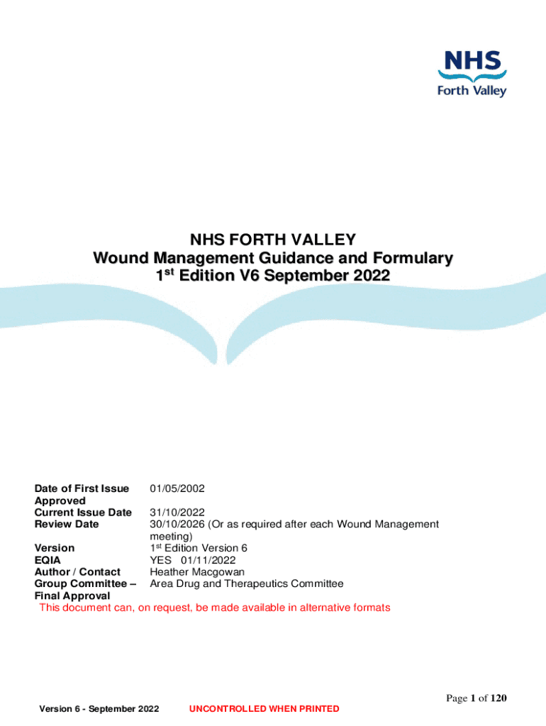 Get the free Nhs Forth Valley Wound Management Guidance and Formulary