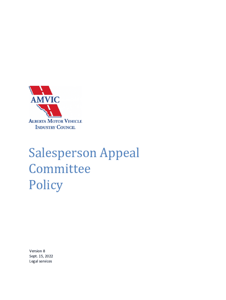Salespersons who wish to appeal a decision related to their employment, such as disciplinary actions or commission disputes, are required to file under the salesperson appeal committee policy.