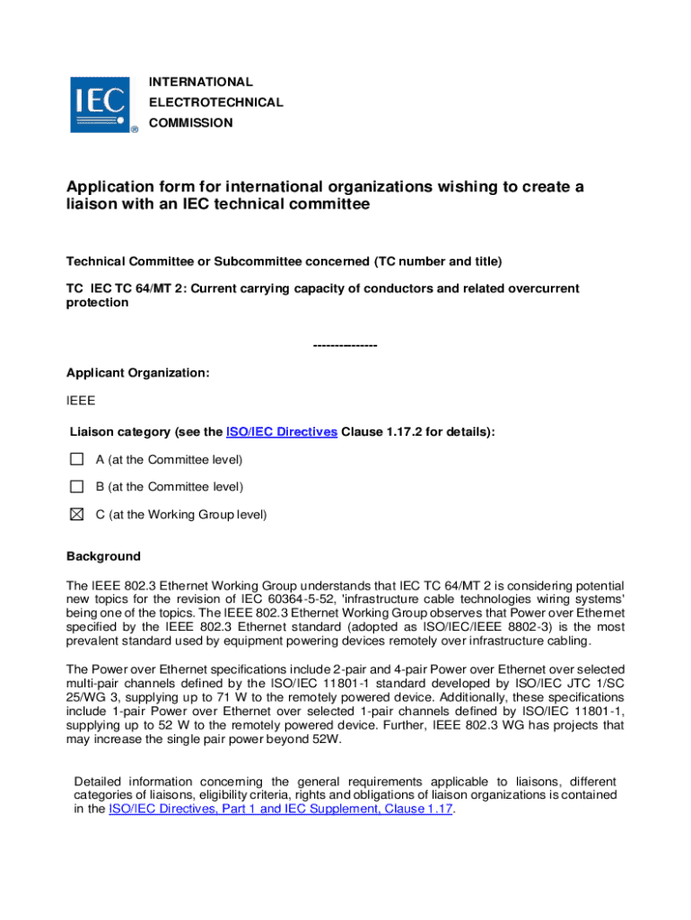 INTERNATIONAL ELECTROTECHNICAL COMMISSIONApplication form for international organizations wishing to create a liaison with an IEC technical committeeTechnical Committee or Subcommittee concerned (TC