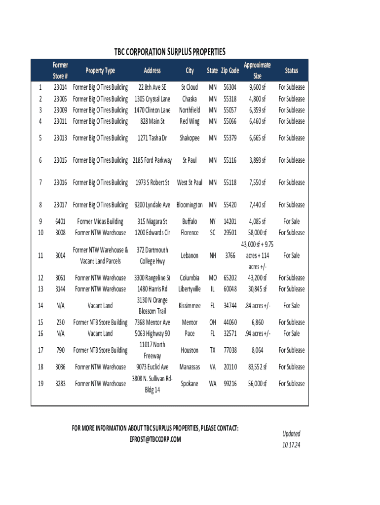 Get the free Tbc Corporation Surplus Properties