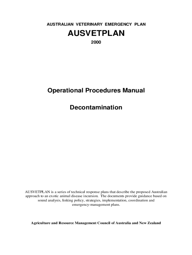 AUSVETPLAN is a series of technical response plans that describe the Australian approach to exotic animal disease incursion, providing guidance on disease control procedures and management strategies for decontamination during animal health emergencies.