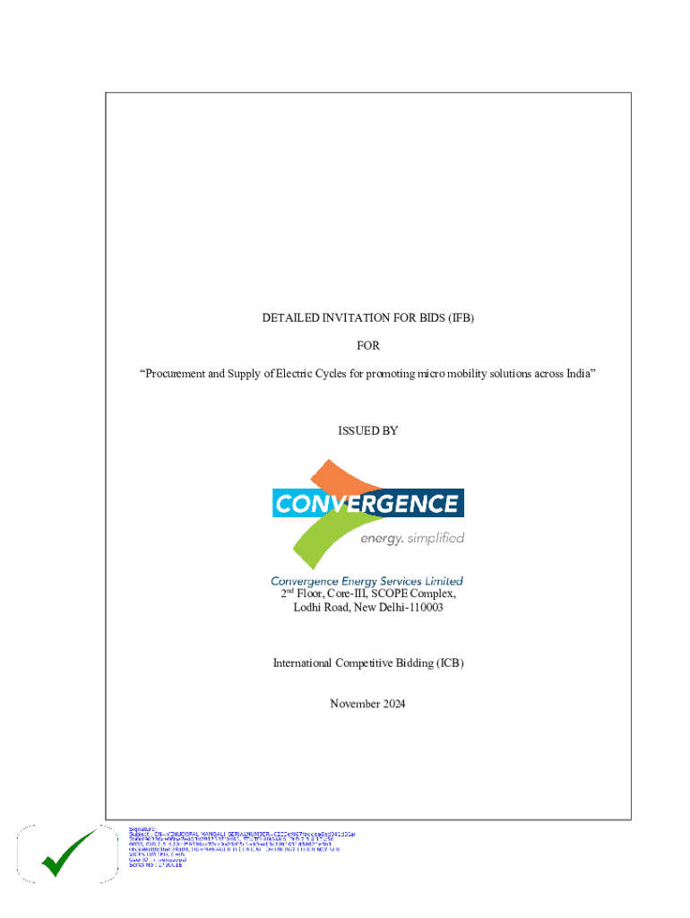DETAILED INVITATION FOR BIDS (IFB) FOR Procurement and Supply of Electric Cycles for promoting micro mobility solutions across IndiaISSUED BY2nd Floor, CoreIII, SCOPE Complex, Lodhi Road, New Delhi110003International