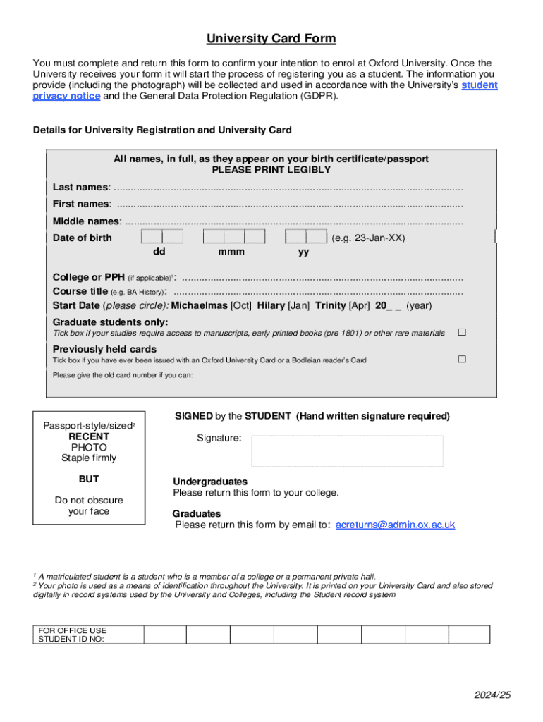 Who needs university card form?