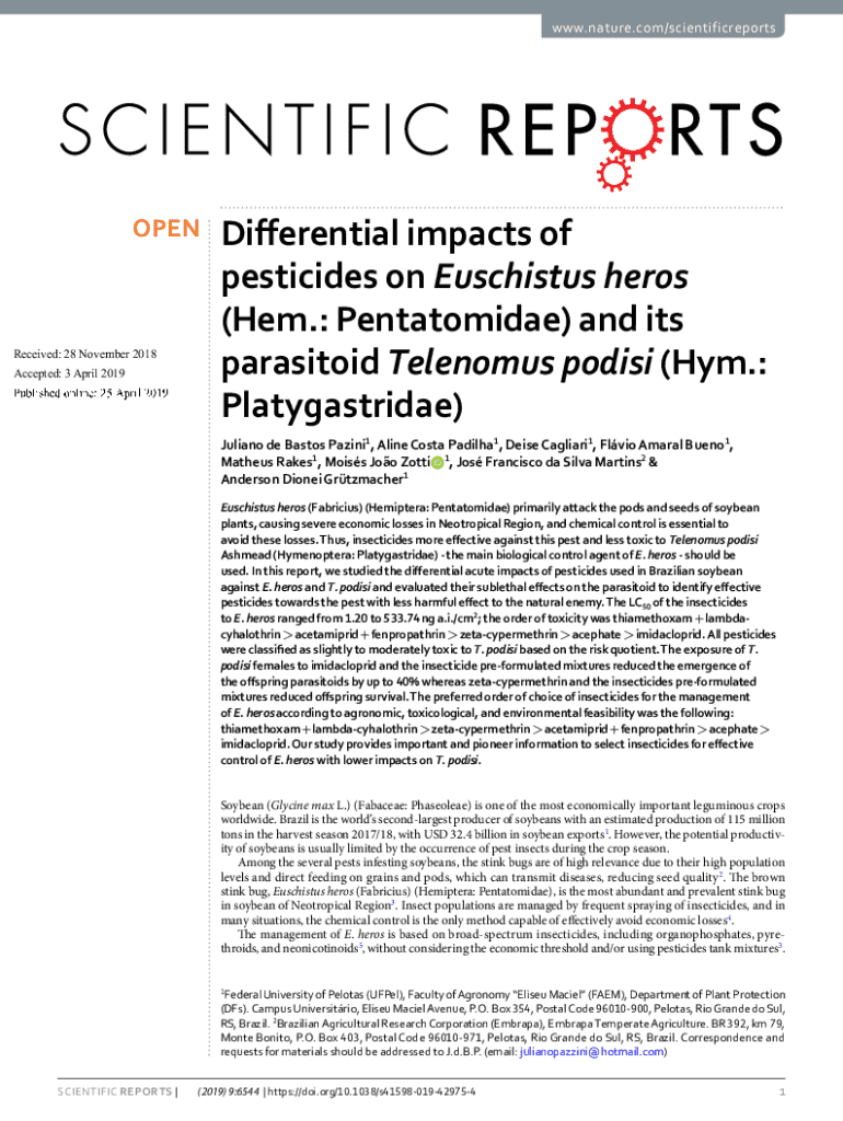 Get the free Differential impacts of pesticides on Euschistus heros (Hem.. Scientific Reports, doi