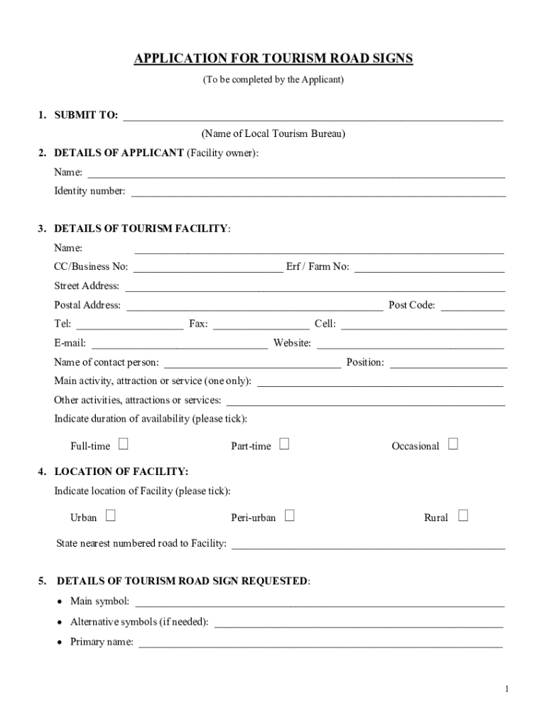 Get the free Application for Tourism Road Signs - twk gov