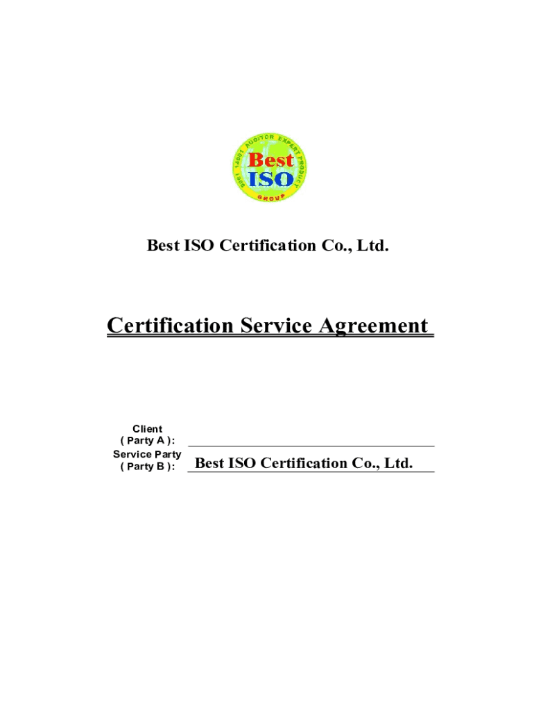 Entities or individuals seeking certification for a specific service or product often need to file a certification service agreement with the relevant certifying body.