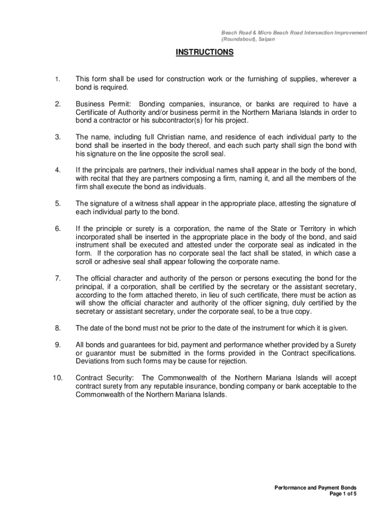 Beach Road & Micro Beach Road Intersection Improvement (Roundabout), SaipanINSTRUCTIONS1.This form shall be used for construction work or the furnishing of supplies, wherever a bond is required.2.Business