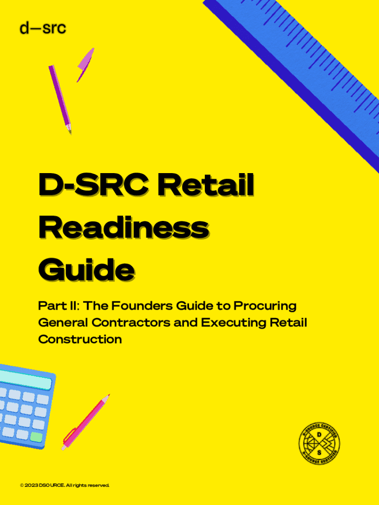 DSRC Retail Readiness Guide Part II: The Founders Guide to Procuring General Contractors and Executing Retail Construction 2023 DSOURCE. All rights reserved.Retail Readiness Guide Pt I: Leasing This