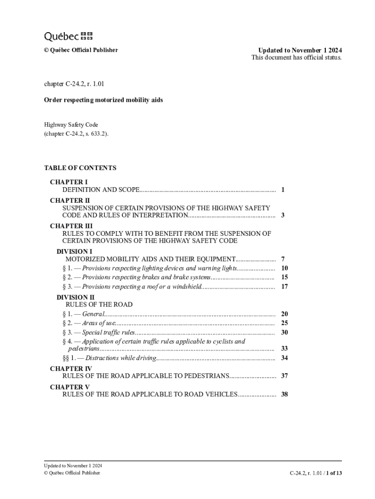 The order respecting motorized mobility is a regulatory guideline that outlines the use, management, and safety protocols related to motorized mobility devices in public spaces.