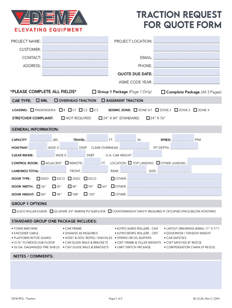 Traction Request for Quote Form PROJECT NAME: ___PROJECT LOCATION: ___CUSTOMER: ______CONTACT: ___EMAIL: ___ADDRESS: ___PHONE: ______QUOTE DUE DATE: ___ ASME CODE YEAR: ___*PLEASE COMPLETE ALL FIELDS*