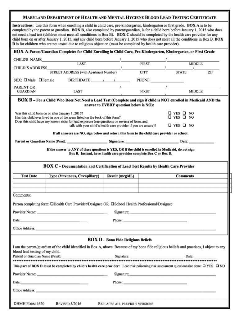 Get the free Dhmh Form 4620
