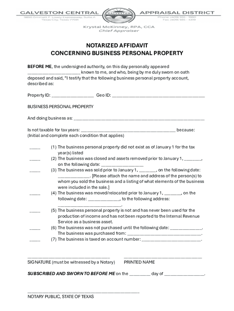 Get the free Notarized Affidavit Concerning Business Personal Property