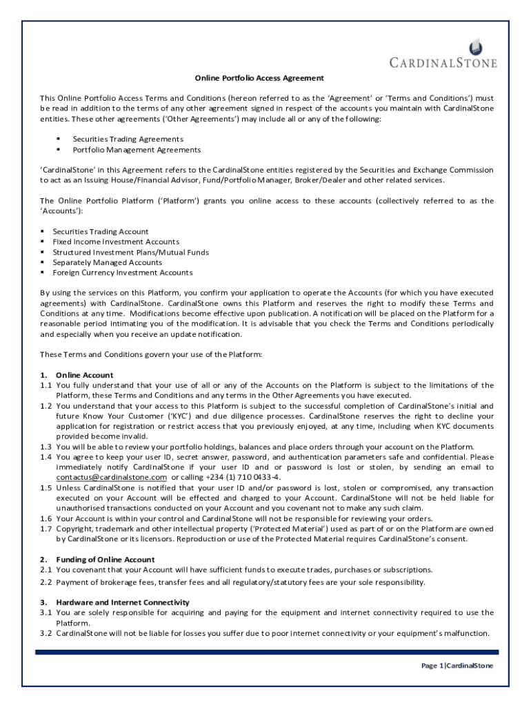 Get the free Online Portfolio Access Agreement