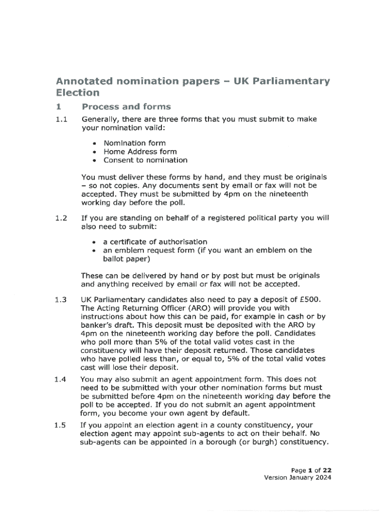 Annotated nomination papers UK Parliamentary Election 1Process and forms1.1Generally, there are three forms that you must submit to make your nomination valid: Nomination form Home Address form Consent