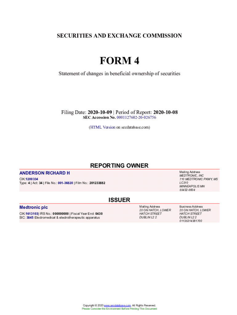 Get the free ANDERSON RICHARD H Form 4 Filed 2020-10-09. Accession Number