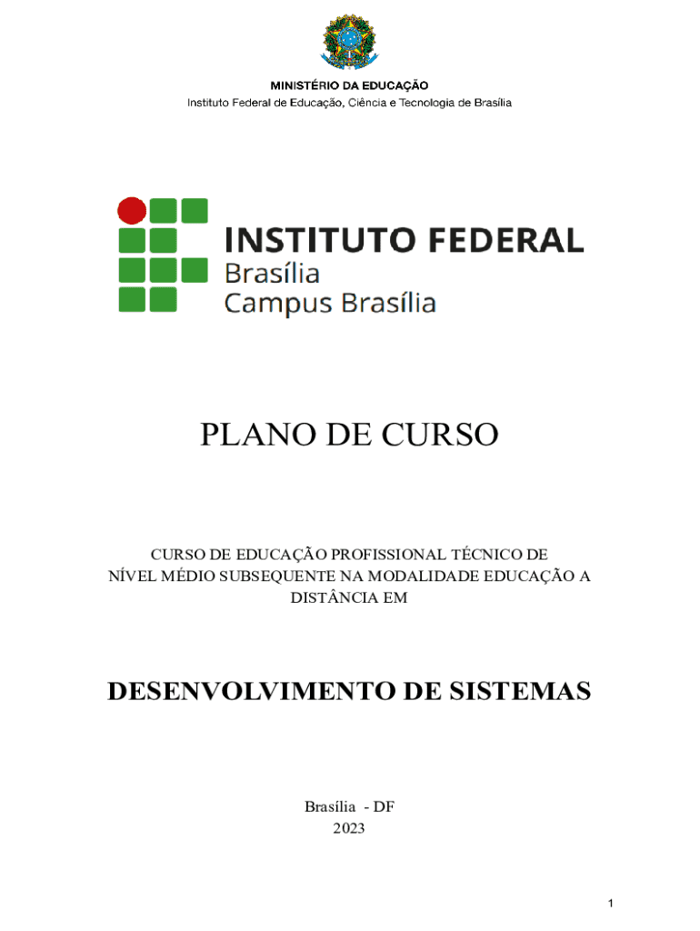 PLANO DE CURSOCURSO DE EDUCAO PROFISSIONAL TCNICO DE NVEL MDIO SUBSEQUENTE NA MODALIDADE EDUCAO A DISTNCIA EMDESENVOLVIMENTO DE SISTEMASBraslia DF 20231REITORIA Luciana Miyoko Massukado Reitora do