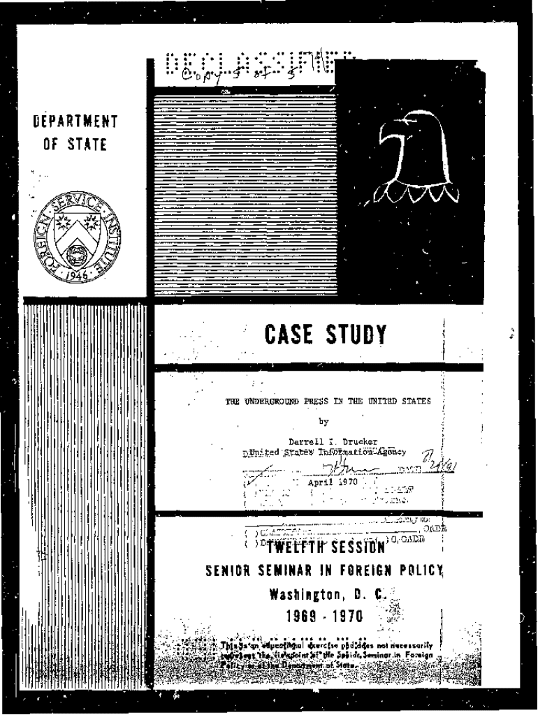 .. .. ... . . . .. .. . ;:.FiE Rn.I...iEP ARTME PITOF STATEvIj96iCASE CASE STUDY STUDY. *I.ITHE UNDERGROUND PRESS IN THE UNITED STATESbyDrucker I. Drucker Darrell I. Darrell Drucker I. y IIn nat6Agc