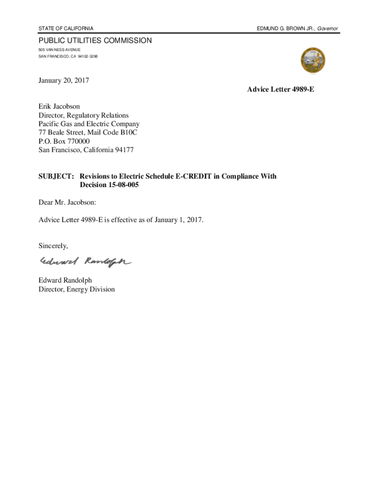 Get the free Advice Letter 4989-e