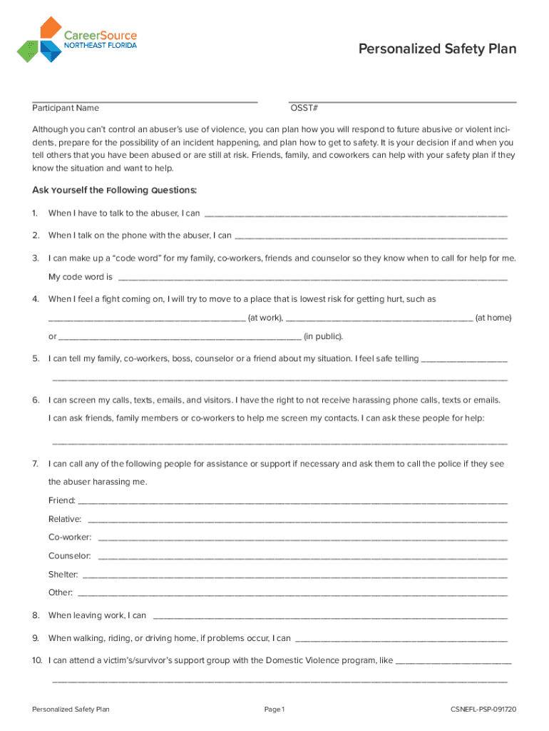 Get the free Personalized Safety Plan