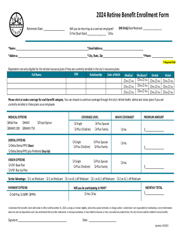 Get the free 2024 Retiree Benefit Enrollment Form