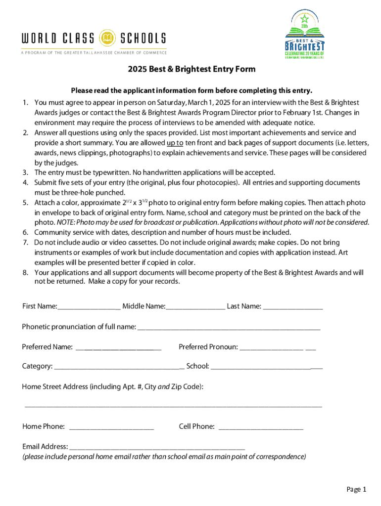 Get the free 2025 Best & Brightest Entry Form - World Class Schools