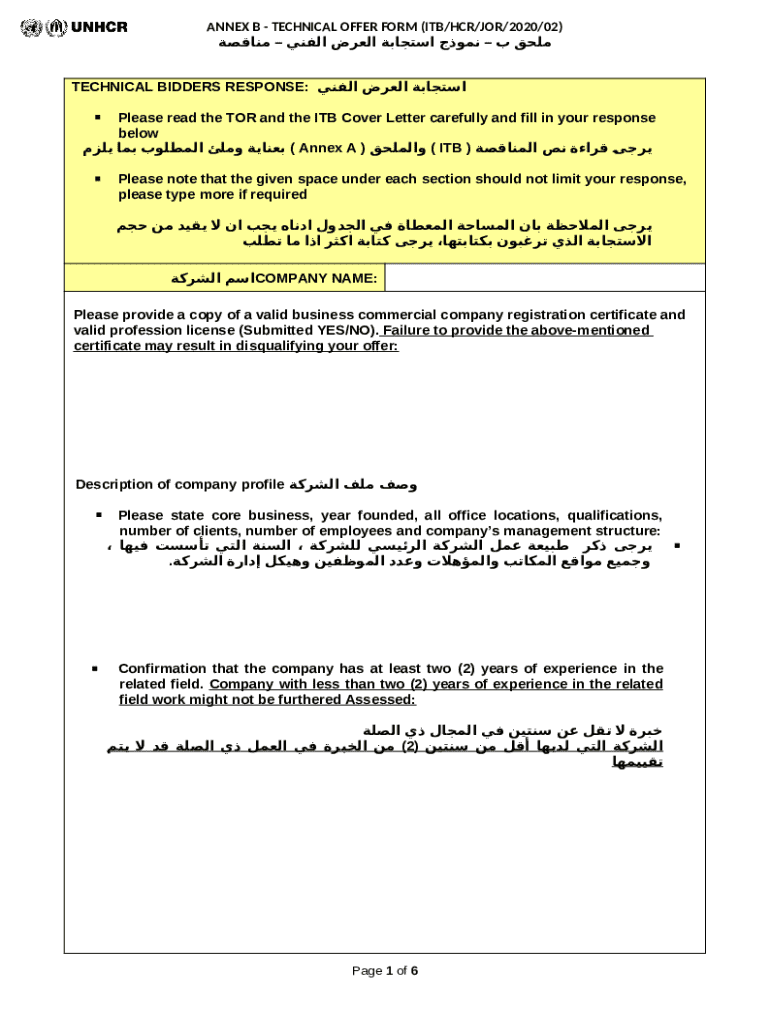 How to fill out Technical Bidders Response