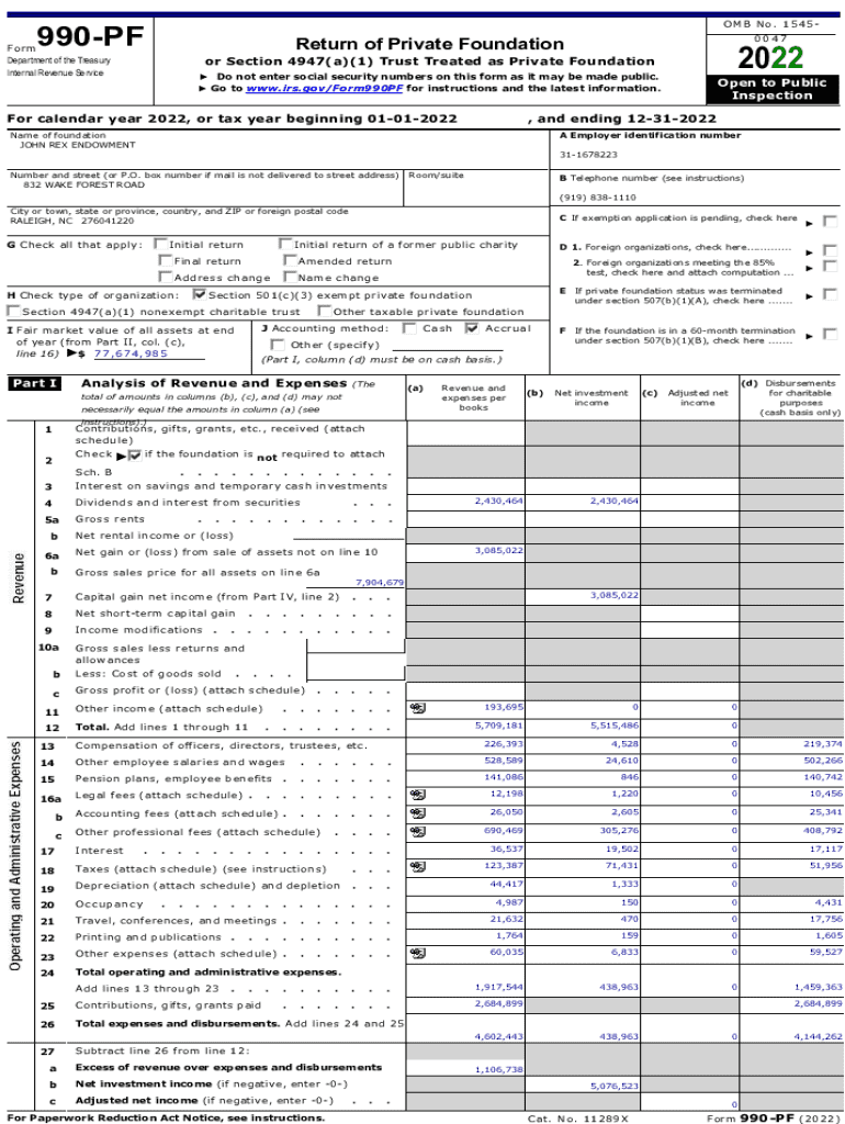 OMB No. 1545990PF0047Return of Private FoundationForm Department of the Treasury Internal Revenue Service2022or Section 4947(a)(1) Trust Treated as Private Foundation Do not enter social security