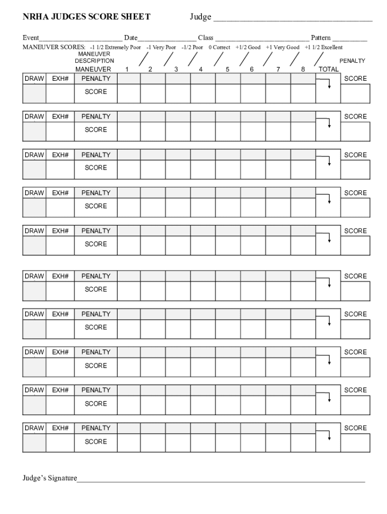 Start by downloading or printing the NRHA Judges Score Sheet.