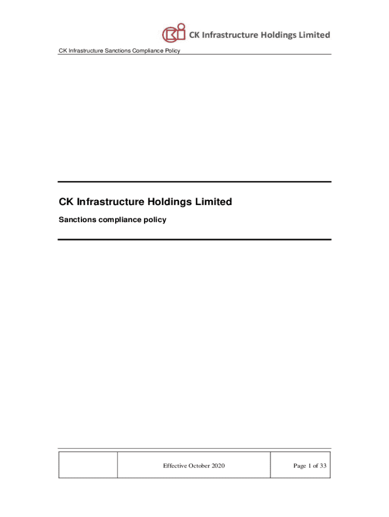 This policy outlines CK Infrastructure Holdings Limited\'s commitment to compliance with financial sanctions laws. It details the purpose, scope, responsibilities, and procedures for identifying and