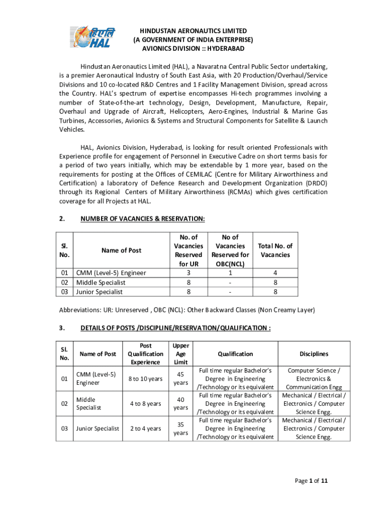 HINDUSTAN AERONAUTICS LIMITED (A GOVERNMENT OF INDIA ENTERPRISE) AVIONICS DIVISION :: HYDERABAD Hindustan Aeronautics Limited (HAL), a Navaratna Central Public Sector undertaking, is a premier Aeronautical