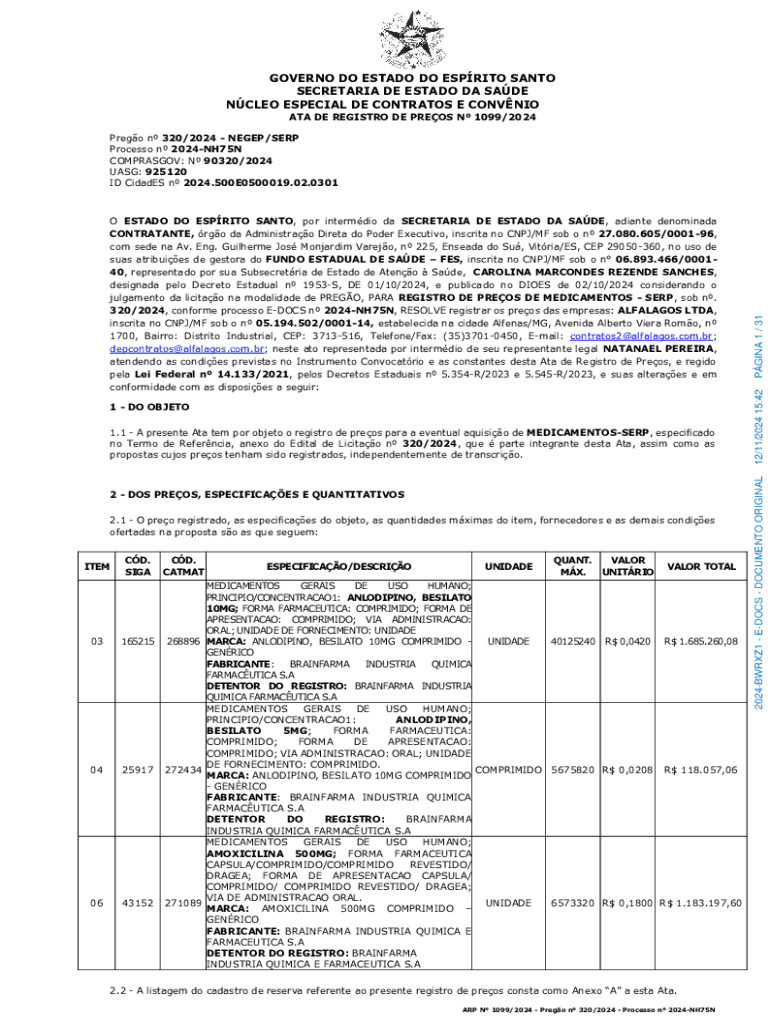 Obtenha o gratuito Atas de Registro de Preos e Contratos - Portal Gov.br - saude es gov
