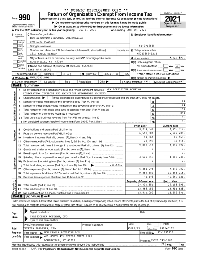 ** PUBLIC DISCLOSURE COPY ** Form990Return of Organization Exempt From Income TaxOMB No. 15450047| Do not enter social security numbers on this form as it may be made public.Open to Public Inspection2021Under