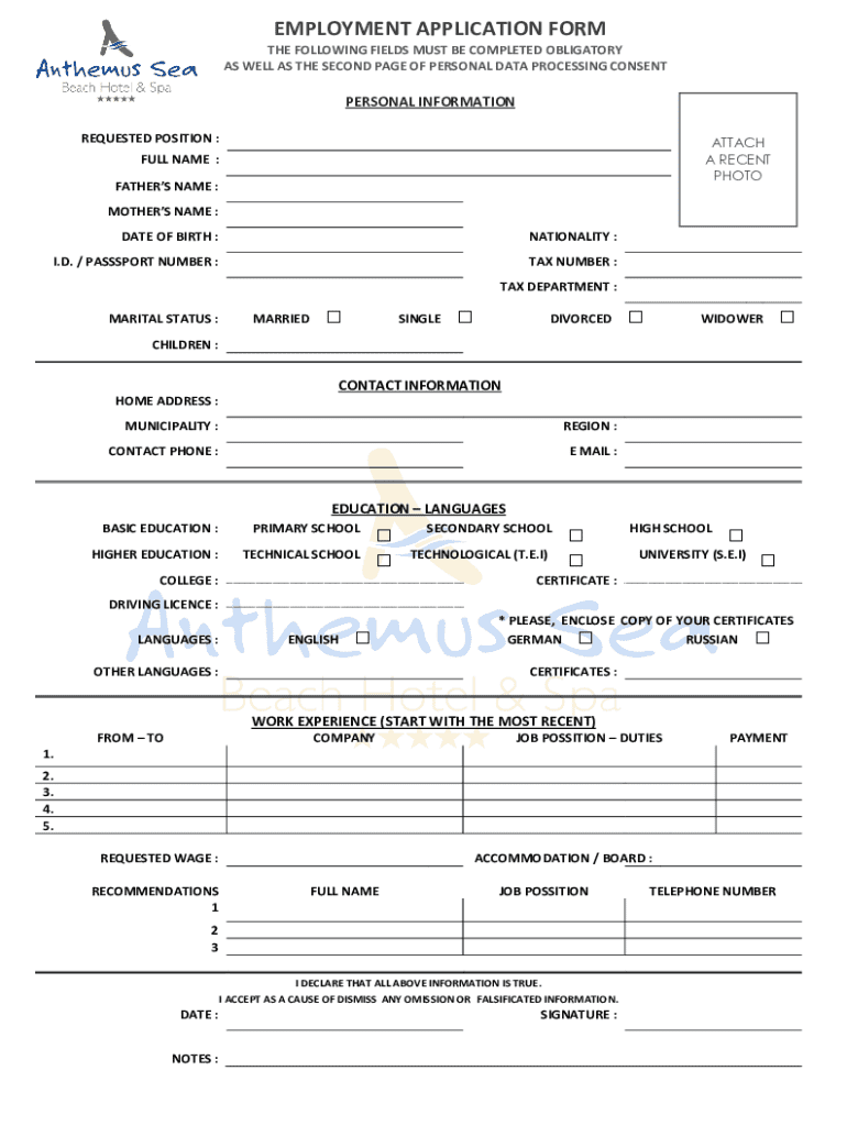 Get the free Employment Application Form