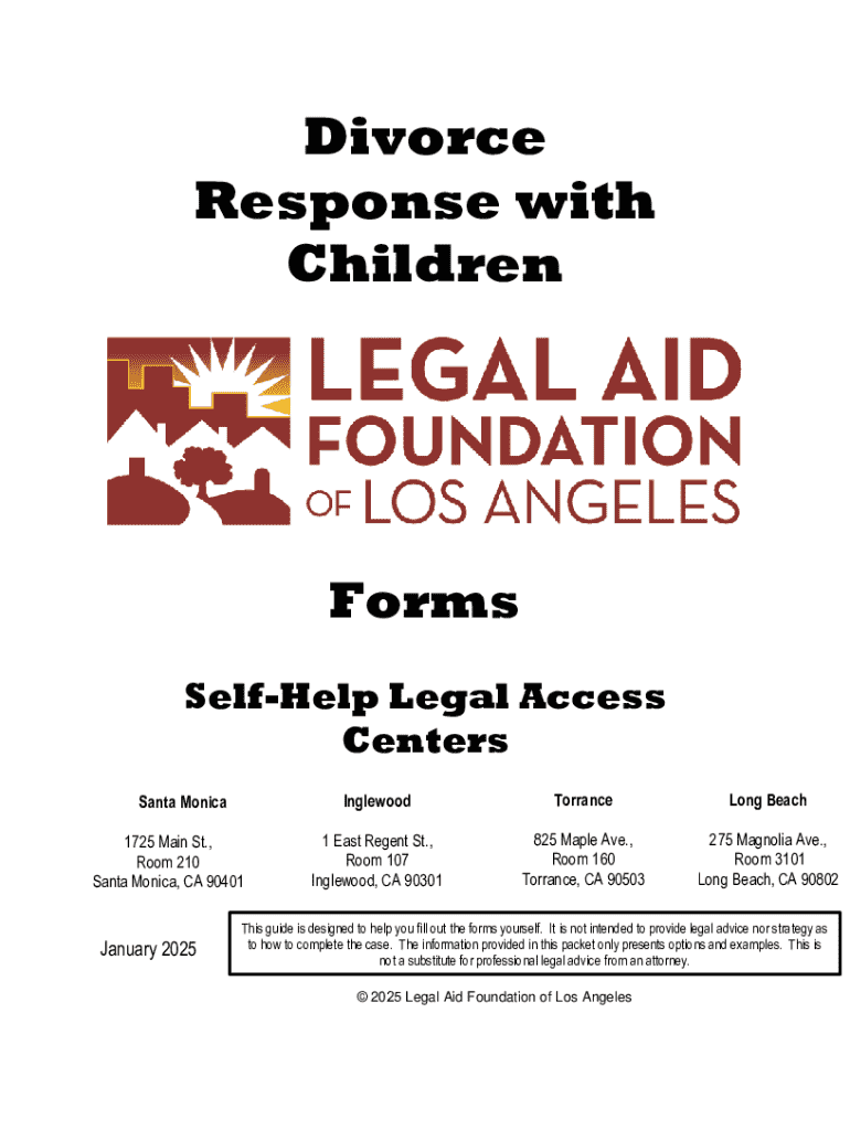 Divorce Response with ChildrenForms SelfHelp Legal Access Centers Santa Monica 1725 Main St., Room 210 Santa Monica, CA 90401January 2025InglewoodTorranceLong Beach1 East Regent St., Room 107 Inglewood,