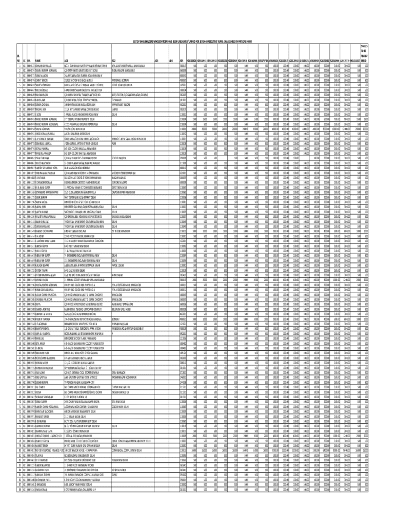 LIST OF SHAREHOLDERS WHOSE DIVIDEND HAS BEEN UNCLAIMED/UNPAID FOR SEVEN CONSECUTIVE YEARS : SHARES HELD IN PHYSICAL FORMSR. NO 1 2 3 4 5 6 7 8 9 10 11 12 13 14 15 16 17 18 19 20 21 22 23 24 25 26