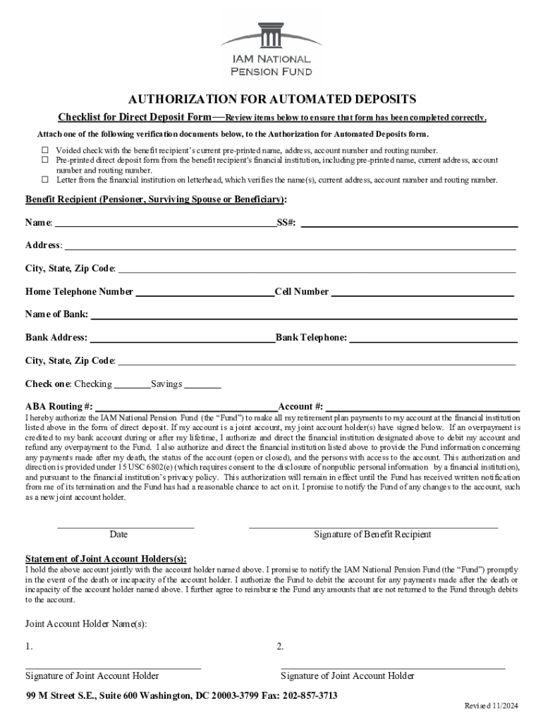 Get the free Authorization for Automated Deposits
