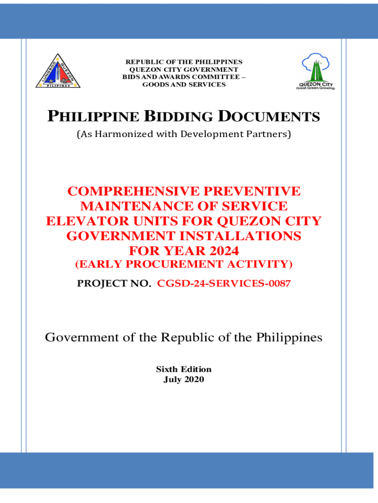 REPUBLIC OF THE PHILIPPINES QUEZON CITY GOVERNMENT BIDS AND AWARDS COMMITTEE GOODS AND SERVICESPHILIPPINE BIDDING DOCUMENTS (As Harmonized with Development Partners)COMPREHENSIVE PREVENTIVE MAINTENANCE