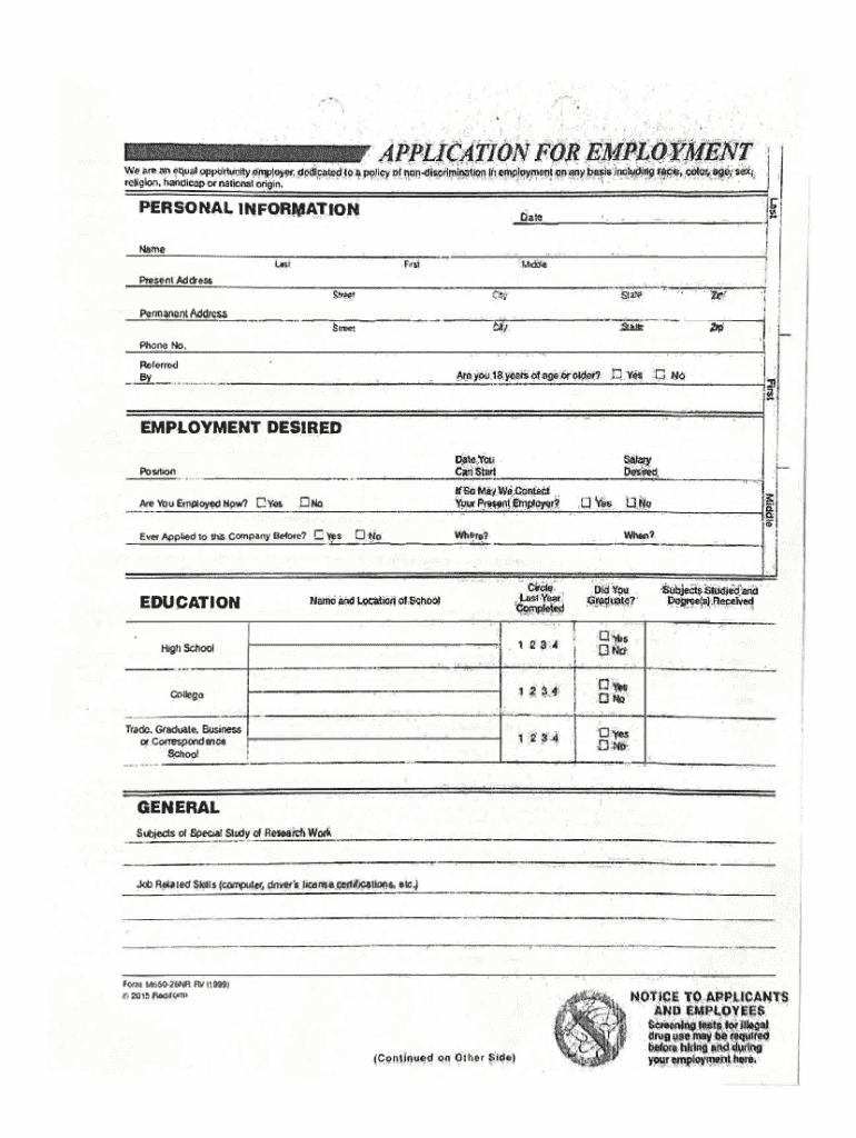 This document is a personal employment application form that collects information about the applicant\'s personal details, employment history, education, and skills.