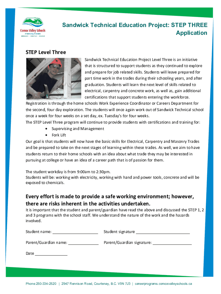 Fill out the relevant forms and applications as per the guidelines provided for the Sandwick Technical Education project.