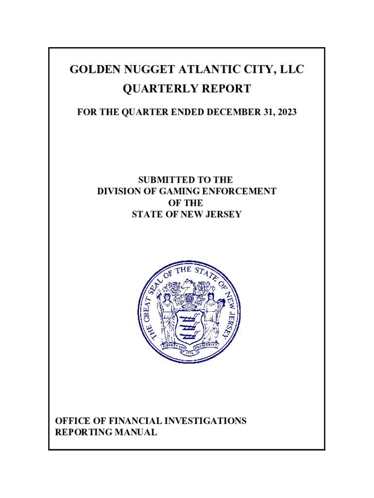 This document provides an overview of the financial performance of Golden Nugget Atlantic City, LLC for the quarter ended December 31, 2023, detailing the balance sheet, income statement, cash flows, and promotional expenses.