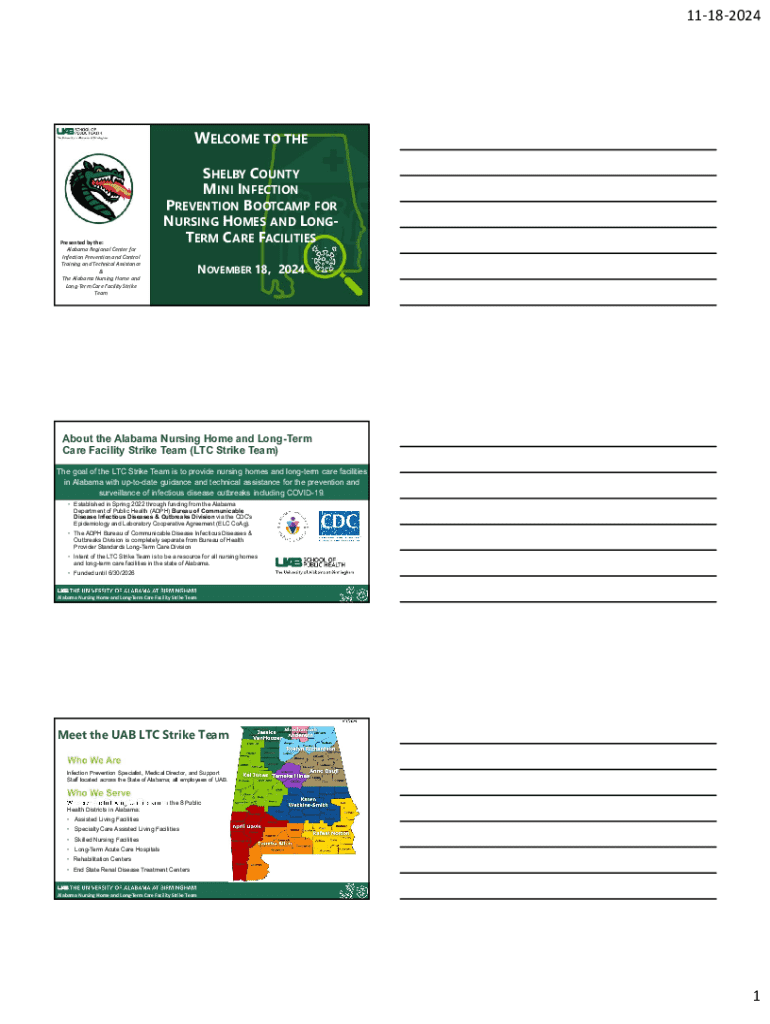 11182024WELCOME TO THEPresented by the: Alabama Regional Center for Infection Prevention and Control Training and Technical Assistance & The Alabama Nursing Home and LongTerm Care Facility Strike