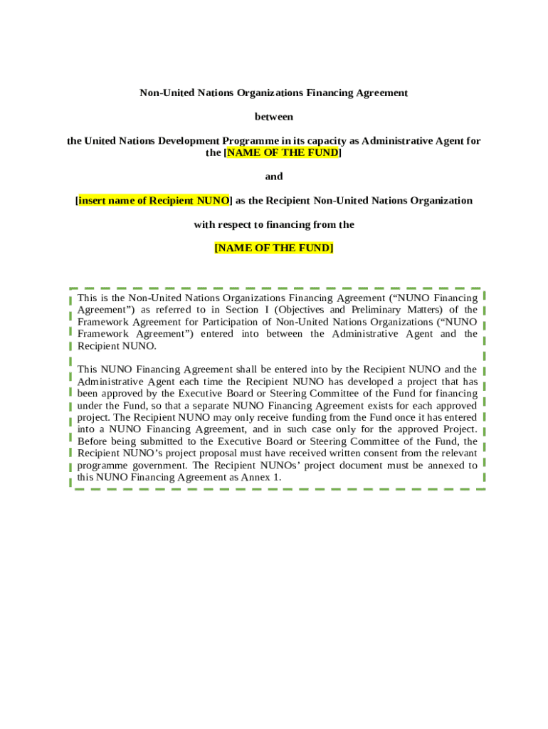 Non-united Nations Organizations Financing Agreement - mptf undp template instructions