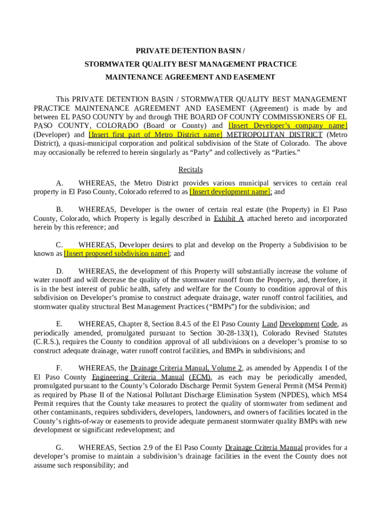 What is Private Detention Basin / Stormwater Quality Best Management Practice Maintenance Agreement and Easement Form?