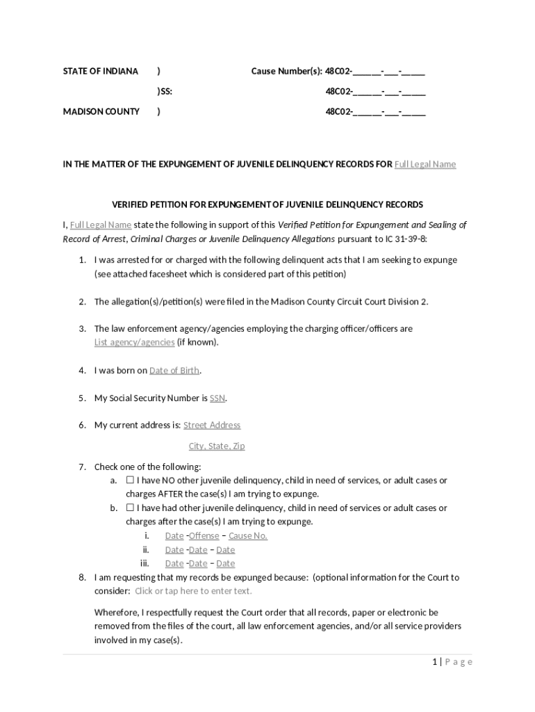 Frequently asked questions about the form STATE OF INDIANA)Cause Number(s): 48C02---