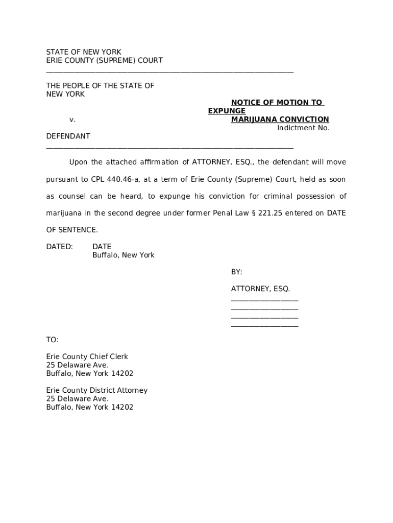Template Notice of Motion to Expunge Marijuana Conviction instructions