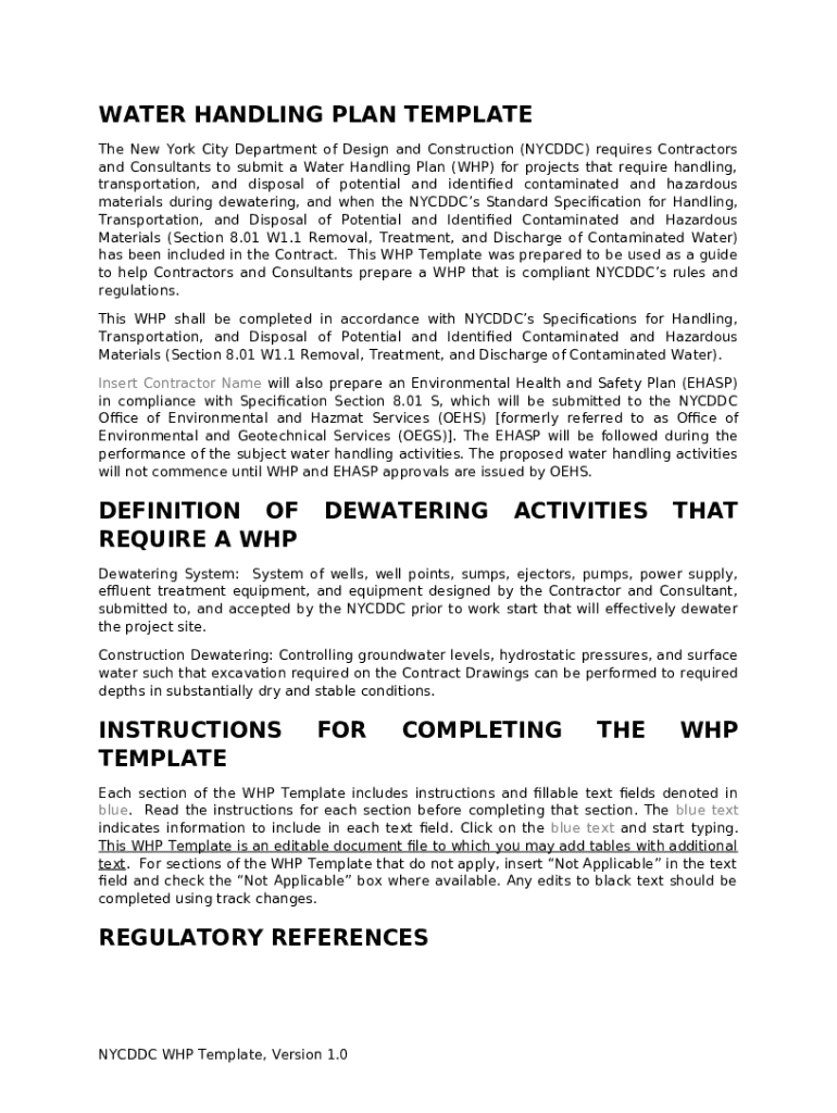 What is Water Handling Plan Template Form?